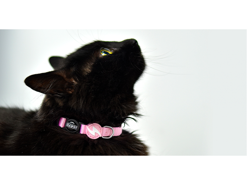 As coleiras Dashi são feitas de poliéster resistente, totalmente ajustáveis, com um fecho de abertura fácil para a segurança do teu gato.