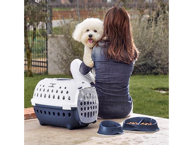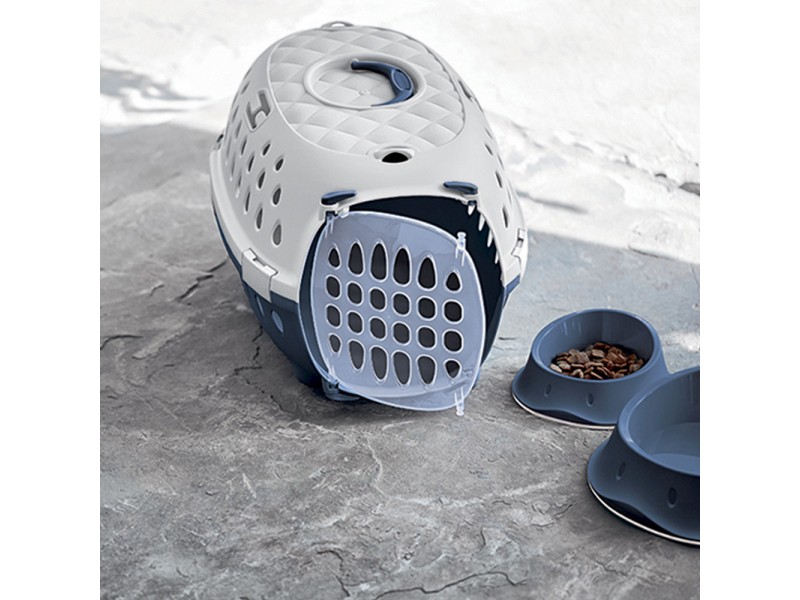 Transportadora com design moderno e elegante e um efeito "almofadado" na parte superior.
