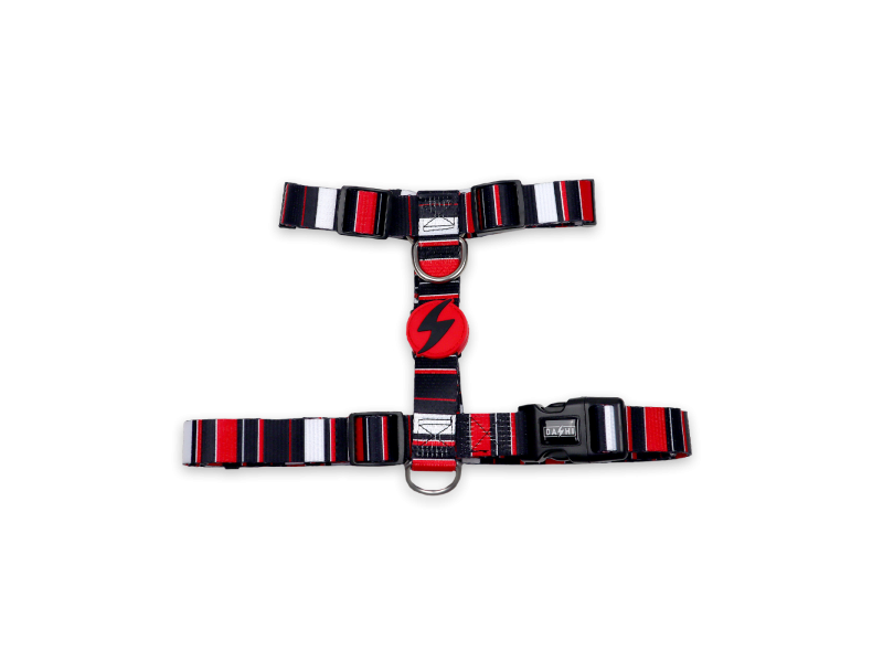 Os arnêses Dashi são feitos em poliéster resistente, totalmente ajustáveis, com um fecho de 4 pontos para a segurança do teu cão. Possuem ainda dois anéis metálicos na parte traseira para que possas escolher onde desejas colocar a trela.
