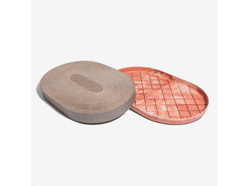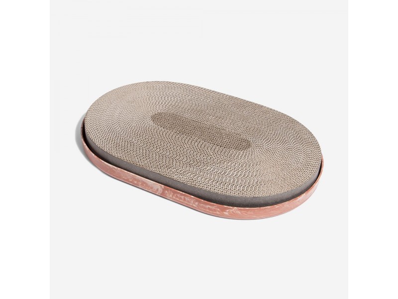O arranhador para gatos Citrus é feito de camadas de papelão e é extremamente atrativo para os gatos arranharem.
