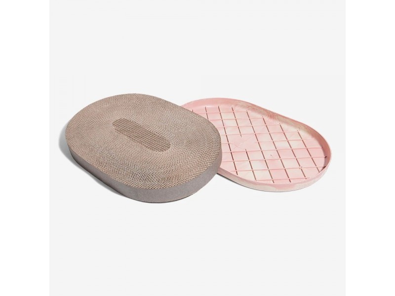 O arranhador para gatos Light Pink é feito de camadas de papelão e é extremamente atrativo para os gatos arranharem.