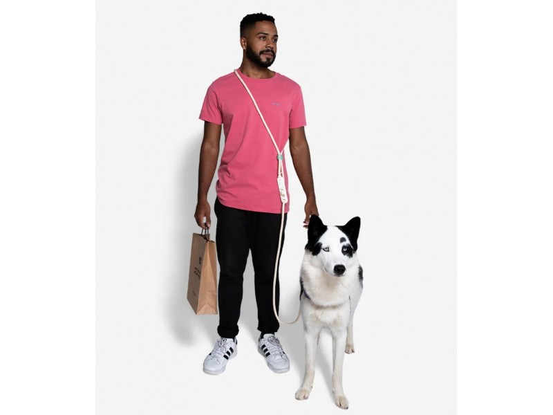- Pode ser usada ao redor do corpo, na cintura, ou como uma trela convencional;